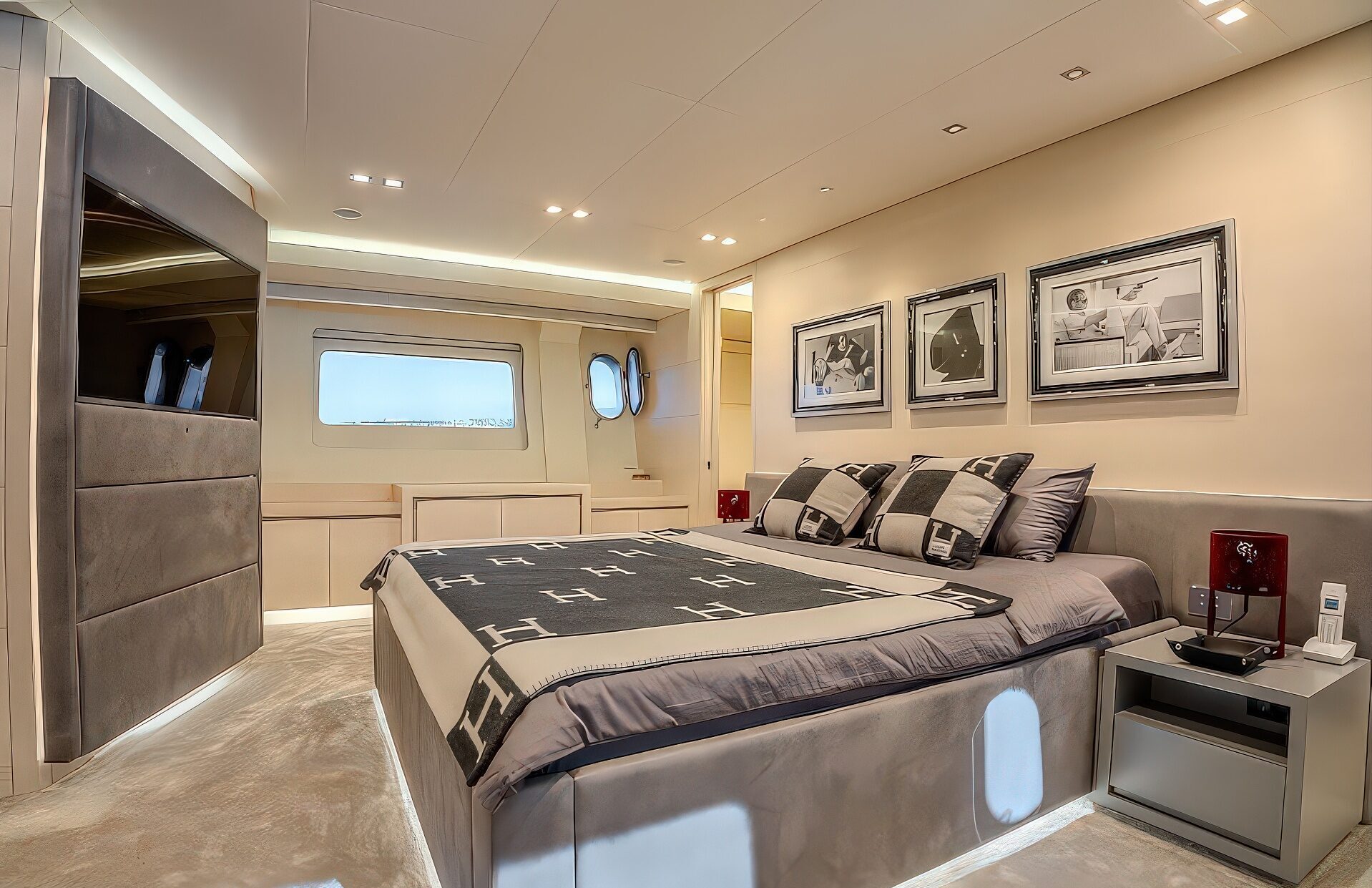 SPECTRE provides accommodation for up to 9 guests in 4 suites, which include an owner’s cabin, 1 VIP cabin, and 2 double cabins. Additionally, she is equipped to carry up to 4 crew members on board, ensuring a relaxed and luxurious yachting experience.