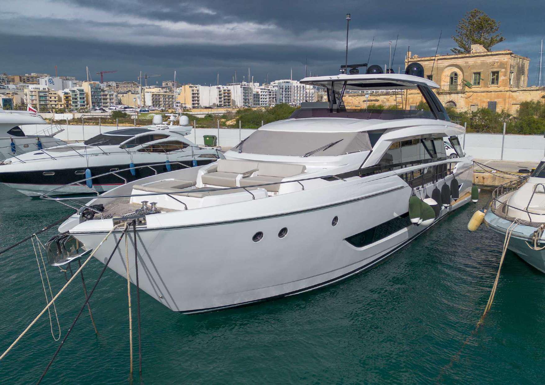 Ferretti 860 is available for sale with an asking price of EUR 6,490,000.