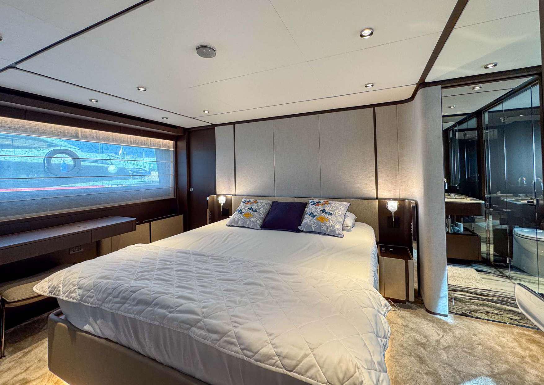 Ferretti provides accommodation for up to 8 guests in 4 suites. Additionally, she is equipped to carry up to 4 crew members on board, ensuring a relaxed and luxurious yachting experience.