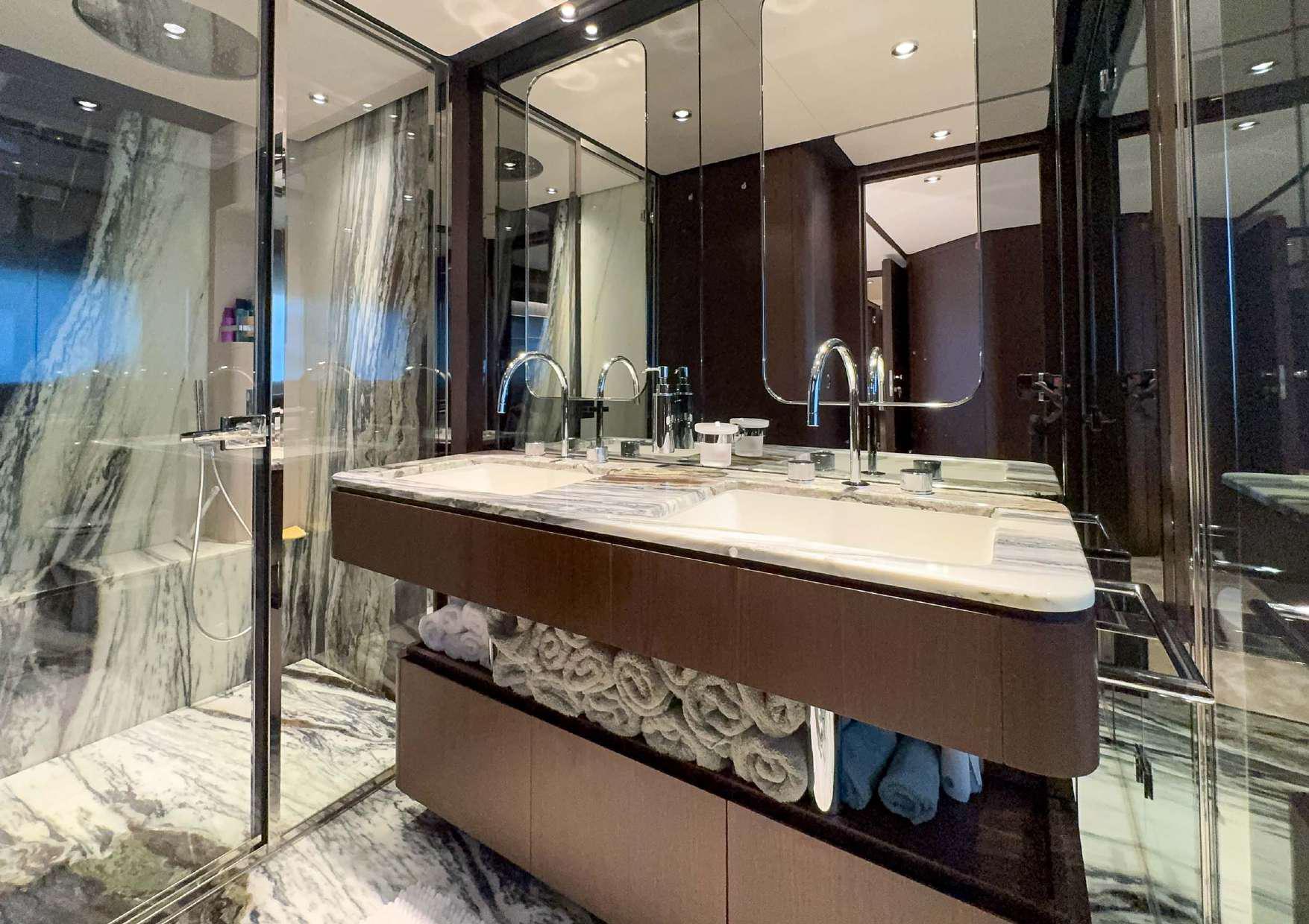 Sumptuously finished interiors and expansive teak decks create the perfect environment for relaxation or entertaining guests. Each space decorated with entire and continuous marble piece – personally selected by the original owner.