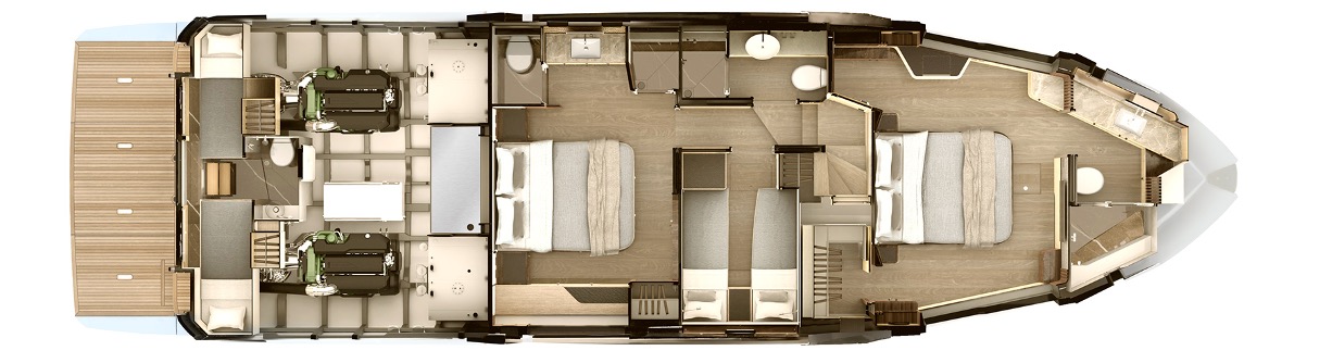 The Absolute 56 Fly combines powerful IPS600 performance with sophisticated Italian design, offering exceptional comfort and efficiency. A luxurious interior with a dedicated crew cabin pairs seamlessly with a fully equipped flybridge featuring BBQ, fridge, and ice maker. With its harmonious layout, advanced technical systems, and luxurious features, the Absolute 56 Fly stands out as a versatile and stylish yacht designed for unforgettable cruising experiences. Perfect for effortless cruising and elegant outdoor living.