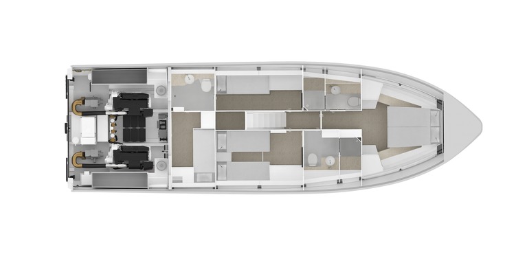 •Crew cabin aft: 1 bed + en-suite (1 + 1)