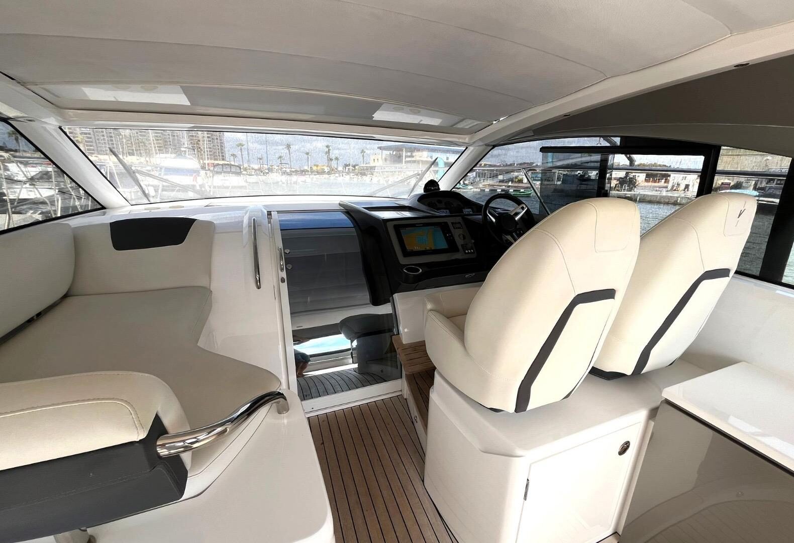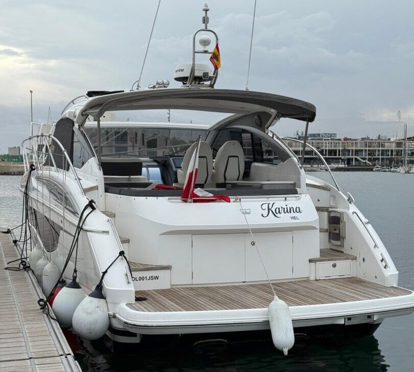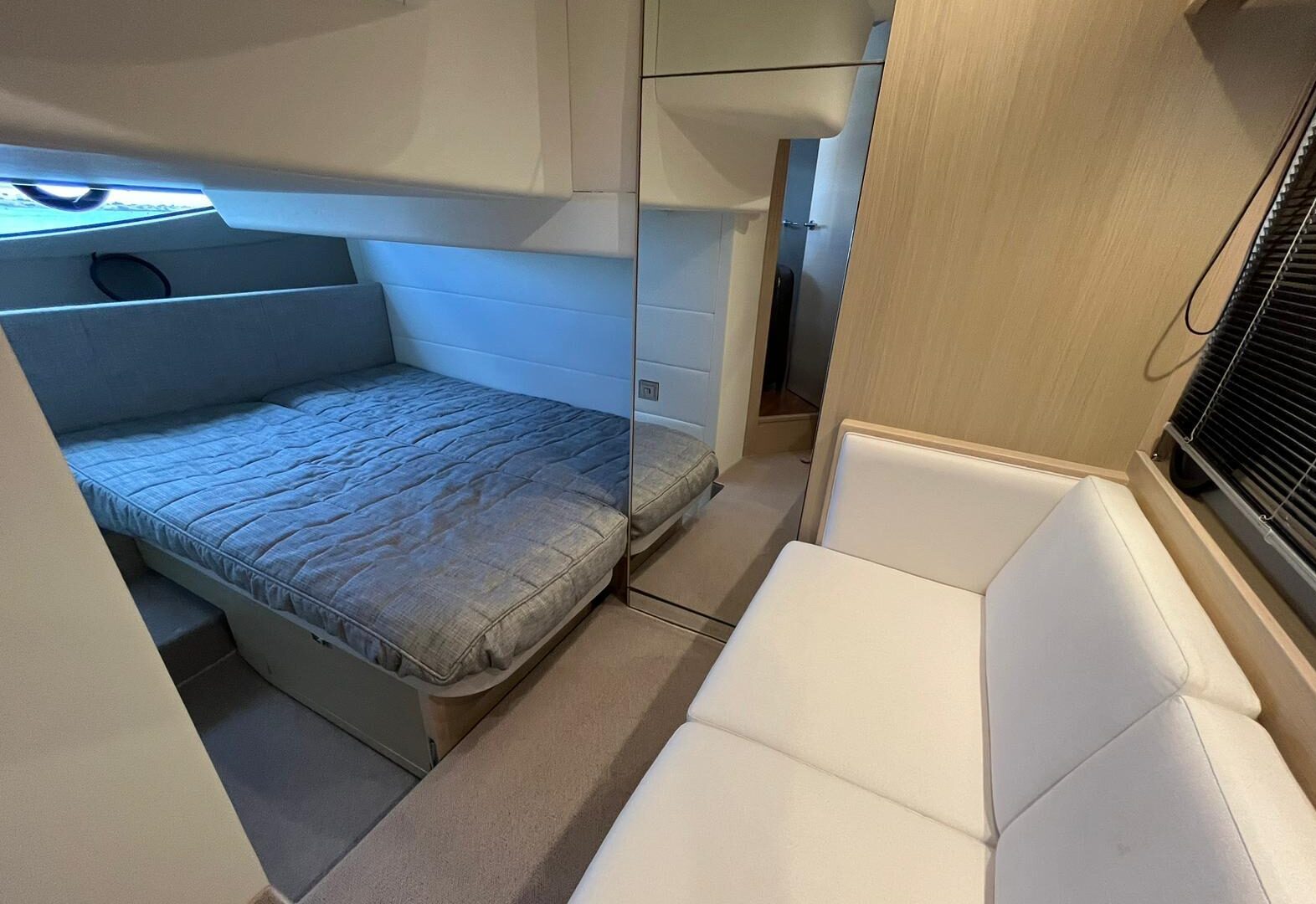 The Princess V40 is a stylish and dynamic sports cruiser that perfectly combines performance, luxury, and practicality. Powered by twin Volvo D6-330 engines, she delivers exhilarating handling and a smooth, comfortable ride. Her sleek exterior lines house a beautifully finished interior featuring Alba Oak satin wood, a bright saloon, and two spacious cabins accommodating up to four guests.