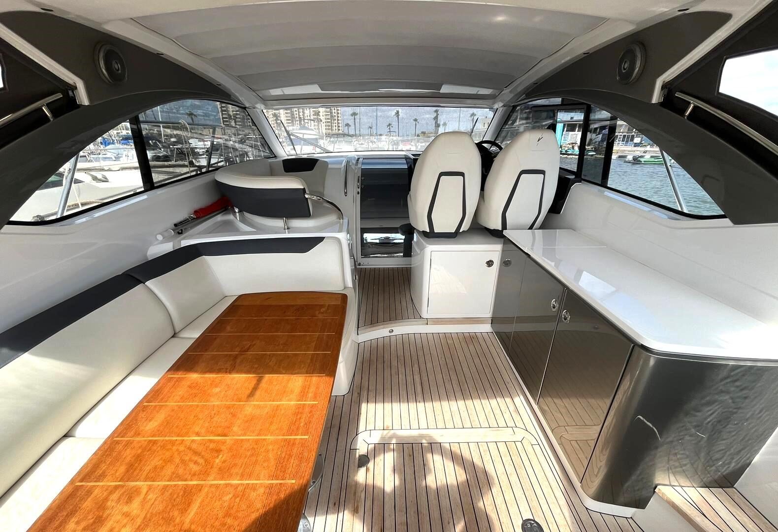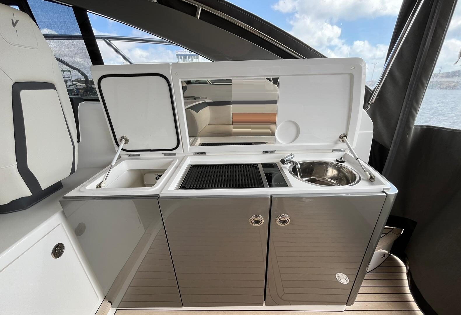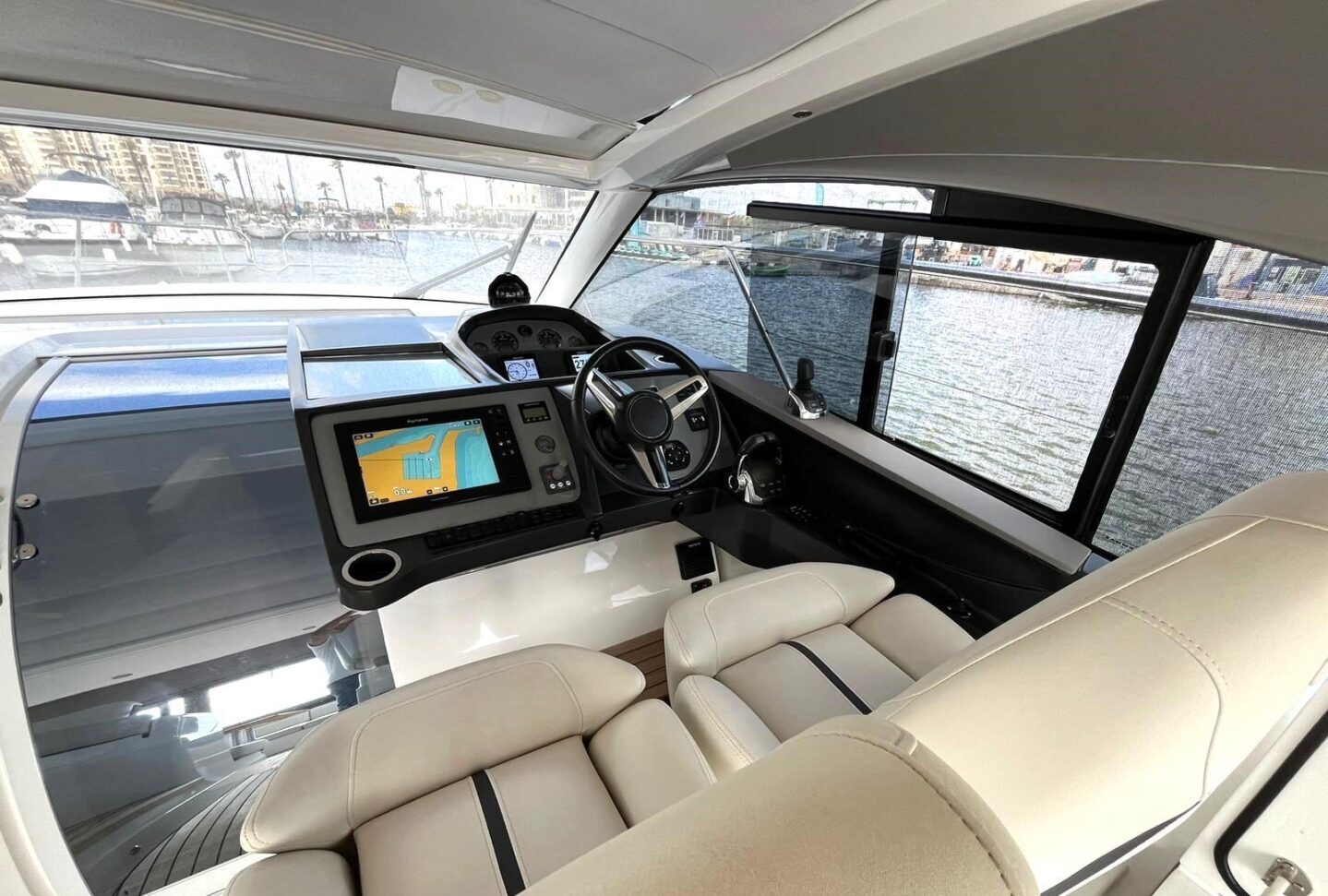 The Princess V40 is a stylish and dynamic sports cruiser that perfectly combines performance, luxury, and practicality. Powered by twin Volvo D6-330 engines, she delivers exhilarating handling and a smooth, comfortable ride. Her sleek exterior lines house a beautifully finished interior featuring Alba Oak satin wood, a bright saloon, and two spacious cabins accommodating up to four guests.
