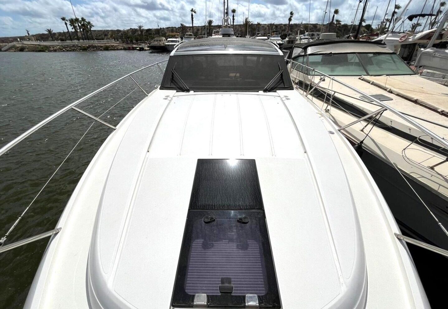 On deck, the large cockpit with teak flooring, wet bar, and sunbed areas make her ideal for entertaining and relaxing at sea. Equipped with high-end Raymarine navigation electronics, generator, air conditioning, and a bow thruster, this Princess V40 offers outstanding comfort and capability for both coastal cruising and extended trips.