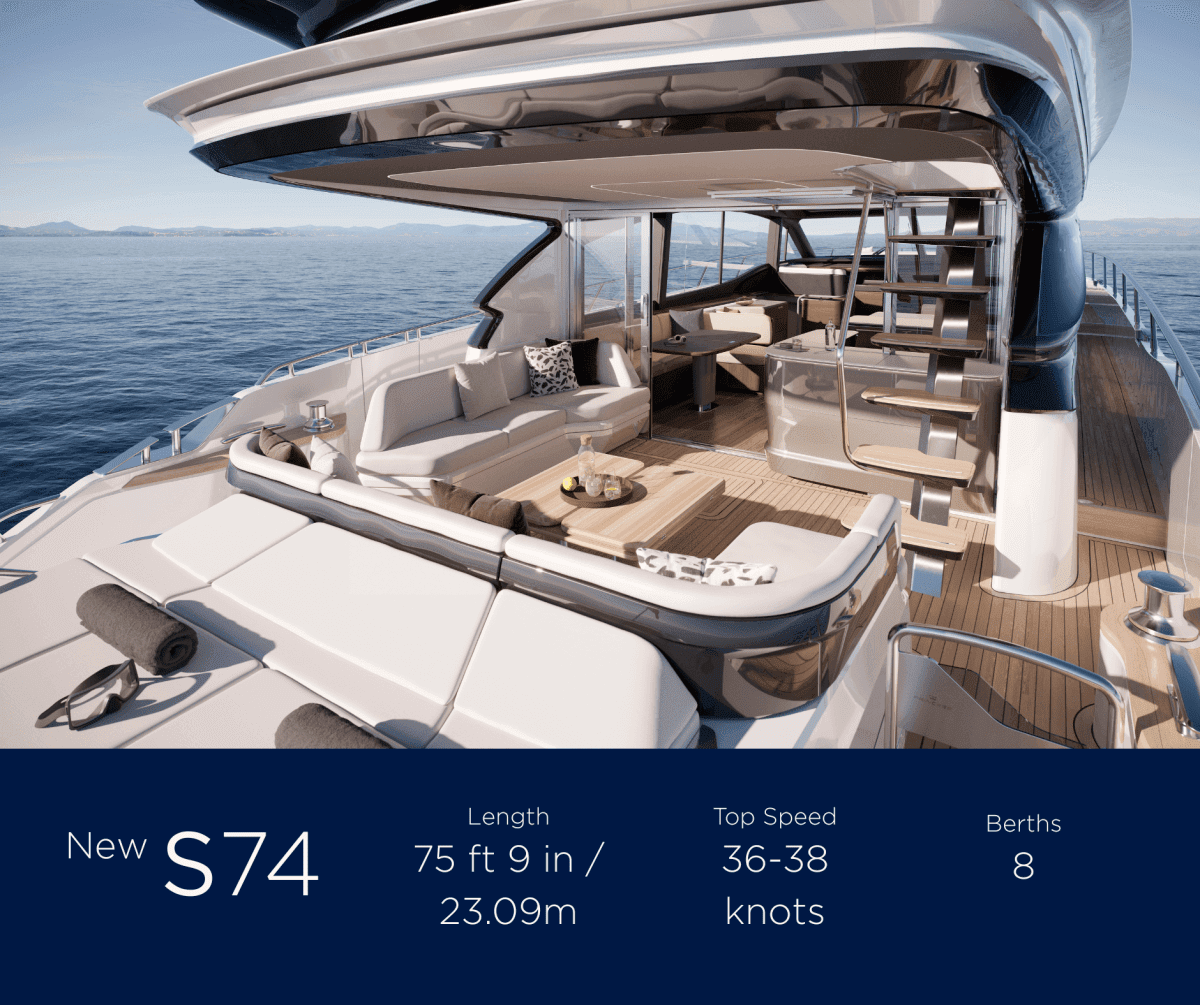 The company also revealed the first details of the impressive new Princess S74, scheduled to launch in 2027. An evolution of the Princess S72, the new model represents a refined expression of sporty luxury, featuring a refreshed interior aesthetic and enhanced exterior lounging areas.